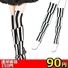 【90円★数量限定】切り替えストライプ柄ニーハイストッキング 色白×黒<お一人様1点限り>