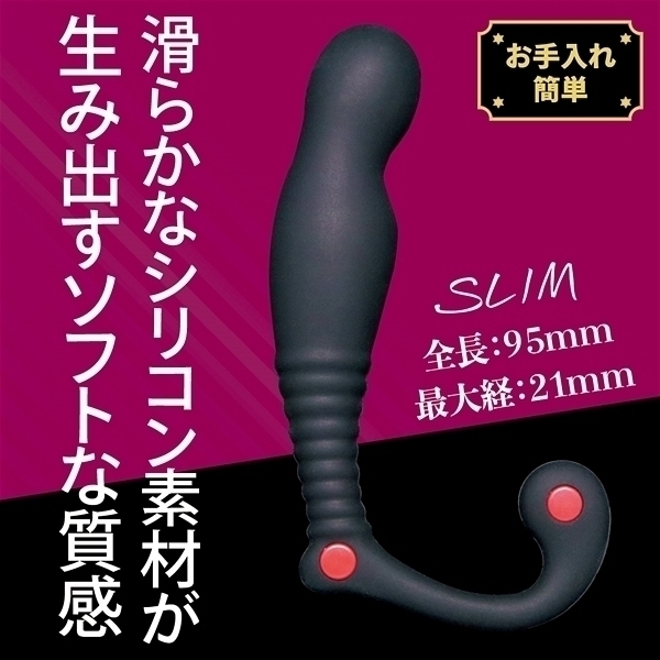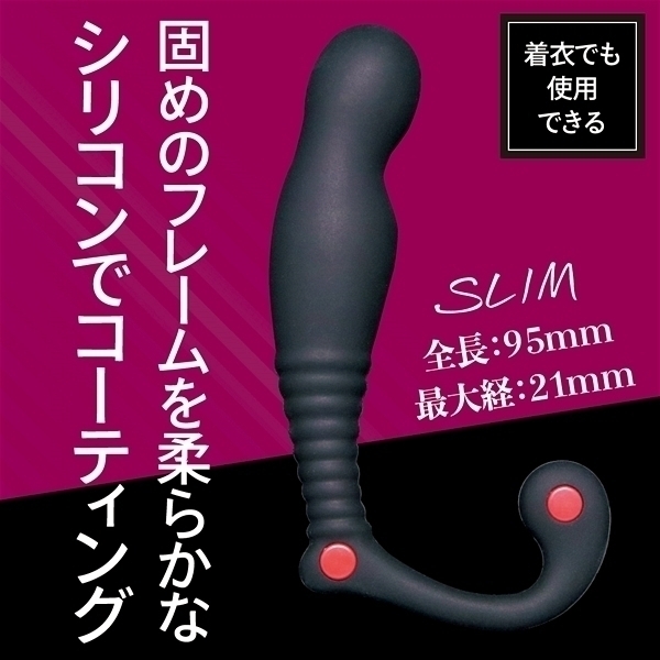 メスイキ開発用に展開された3サイズから選べるプロステーターです♪こちらのシン・エネマ(スリム)は挿入角度的にストレートで、先端と中腹には膨らみがあり、固めのフレームを柔らかなシリコンでコーティングされているので初心者や小さめのサイズから始めたい方に最適なタイプとなっています。