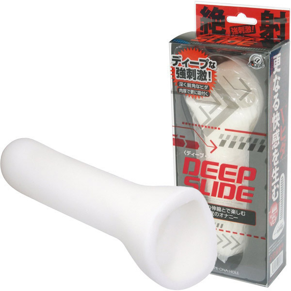 驚異の伸縮オナホがパワーアップ!「ディープスライド」非貫通型は、鋭角なヒダがもたらす強烈な刺激が特徴です♪手で握らずに素材の伸縮を活かし、新感覚のバキューム快感を楽しめるオナホール!内部には高さ3ミリの横ヒダがずらりと並び、ディープな刺激を生み出します。