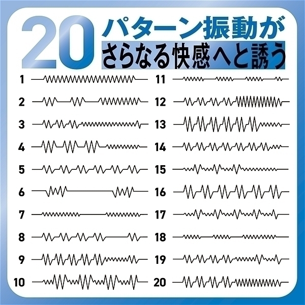 高性能マイクロモーター搭載、20パターン振動がさらなる快感へと誘う、高級シリコン素材使用、高級シリコン素材が生み出すソフトな質感、ピンポイントで敏感部分を刺激!驚きのパワフル振動!電気が走るような強振動!全長:165mm、電源ボタン長押し:ON/OFF、静音仕様●素材:シリコン、ABS樹脂●振動パターン:20パターン●充電方法:USB充電式(充電60分、最大60分使用)●防水:生活防水