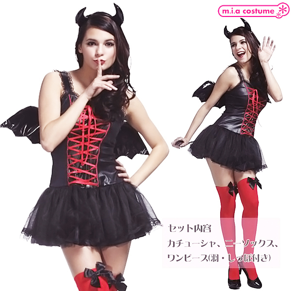 セット内容:カチューシャ、ワンピース(羽、しっぽ付き、背面ファスナー)、ニーソックス 素材:ポリエステル100%