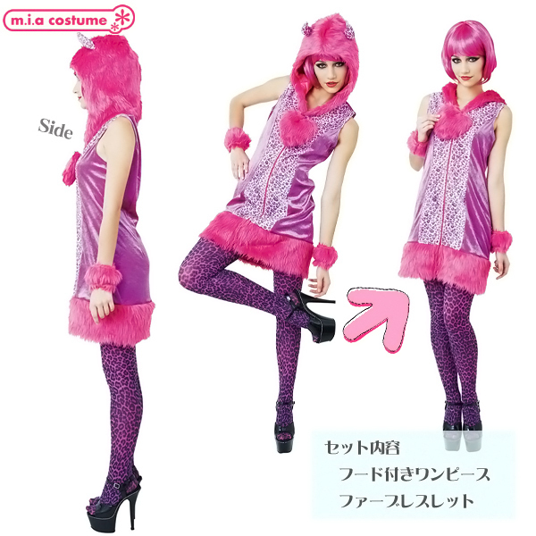 人とかぶらない個性的なハロウィン仮装をお探しの方に!フューシャピンクのビビッドなカラーが注目度抜群な、可愛いヒョウ柄の悪魔コスプレ。